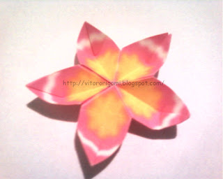 Olá,tenho mais coisinhas novas!!Hoje trago a sakura(flor de ceregeira)achei ela muito bonita e fácil de fazer.Utiliza-se 5 modulos para confecciona-la.