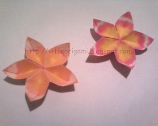 Olá,tenho mais coisinhas novas!!Hoje trago a sakura(flor de ceregeira)achei ela muito bonita e fácil de fazer.Utiliza-se 5 modulos para confecciona-la.