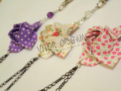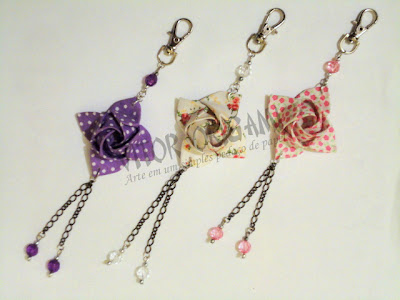 Aqui alguns pingentes/chaveiros de orinuno,a técnica de dobras em tecido.As rosas tem 4cm,um ótimo tamanho para chaveiros!!