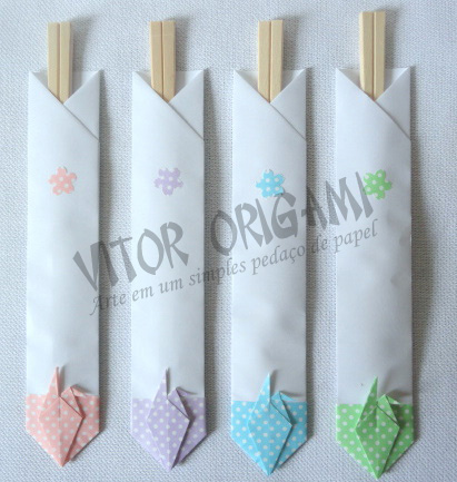Criei mais alguns modelinhos de porta-hashi,desta vez,com ''tsurus'' poás e sakuras ^_~